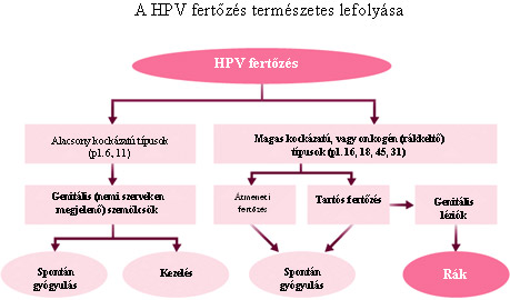 Az onkogén (rákos elfajulást okozó) HPV típusok által okozott fertőzések idővel spontán módon, észlelhető tünetek nélkül eltűnnek a szervezetből, esetenként tartóssá válnak és méhnyakrák kialakulását okozhatják. Az onkogén típusok közül Európában a HPV 16-os és 18-as törzsek együttesen a méhnyakrákok 71,5%-ért felelősek. Ha a szervezetben nem mutatható ki a vírus, akkor a méhnyakrák kialakulására gyakorlatilag nincs esély. Fontos tudni azonban, hogy nem mindenkinél alakul ki a daganat, akinél a vírus jelen van, ami nagy szerencse, mert a HPV-vel szinte mindenki megfertőződik élete során: a teljes életidőre vetített kockázat meghaladja a 80%-ot. A nemi szerveken megjelenő (genitális) HPV fertőzés nagyon gyakori mind a nők, mind a férfiak körében.